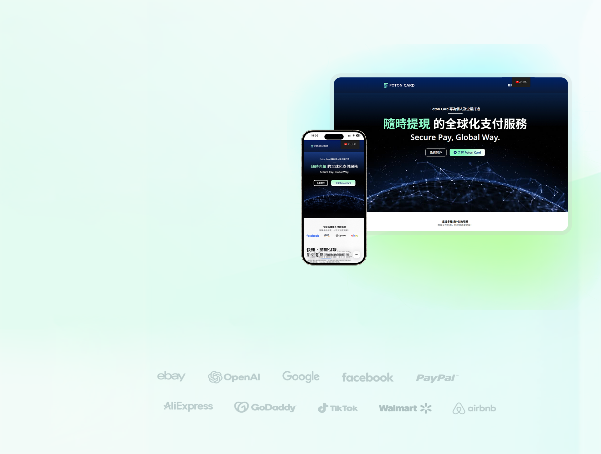通过 FotonCard 的虚拟卡解决方案,为个人与企业提供更灵活的跨境支付方式,快速完成注册、开卡与日常使用。